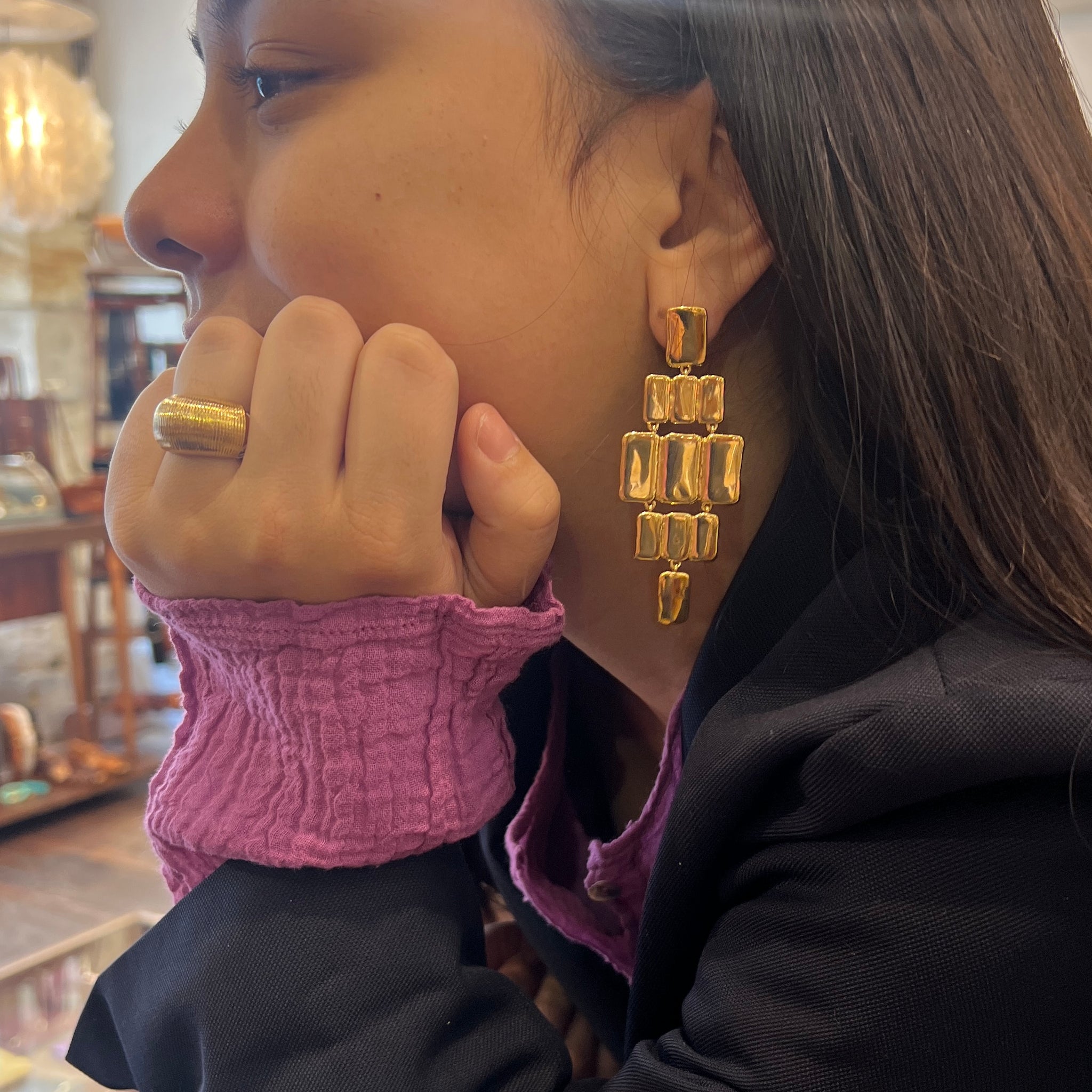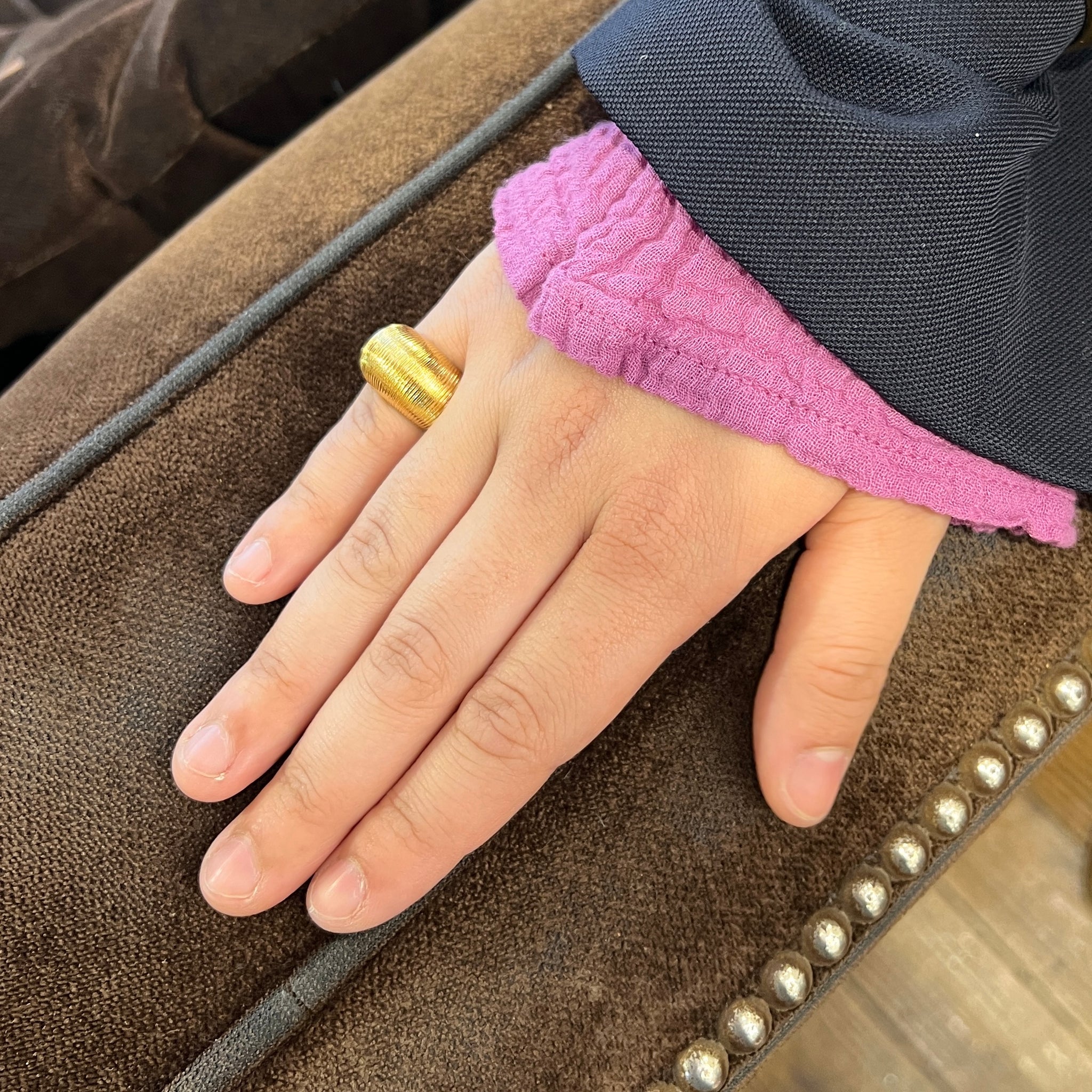 En laiton doré à l'or fin 18 carats, elle mesure 1,6cm de diamètre, 0,6cm de hauteur et 1,7cm de largeur.