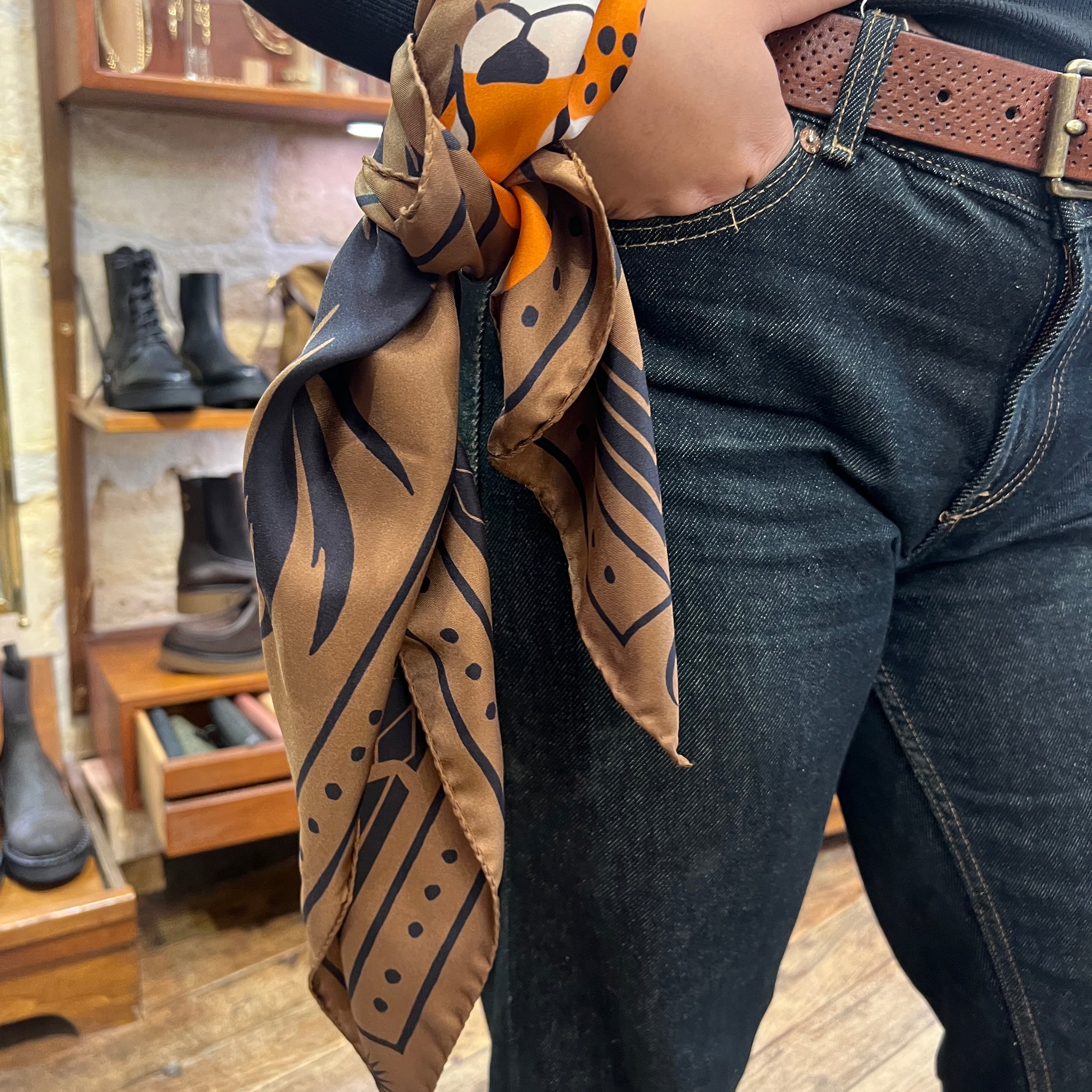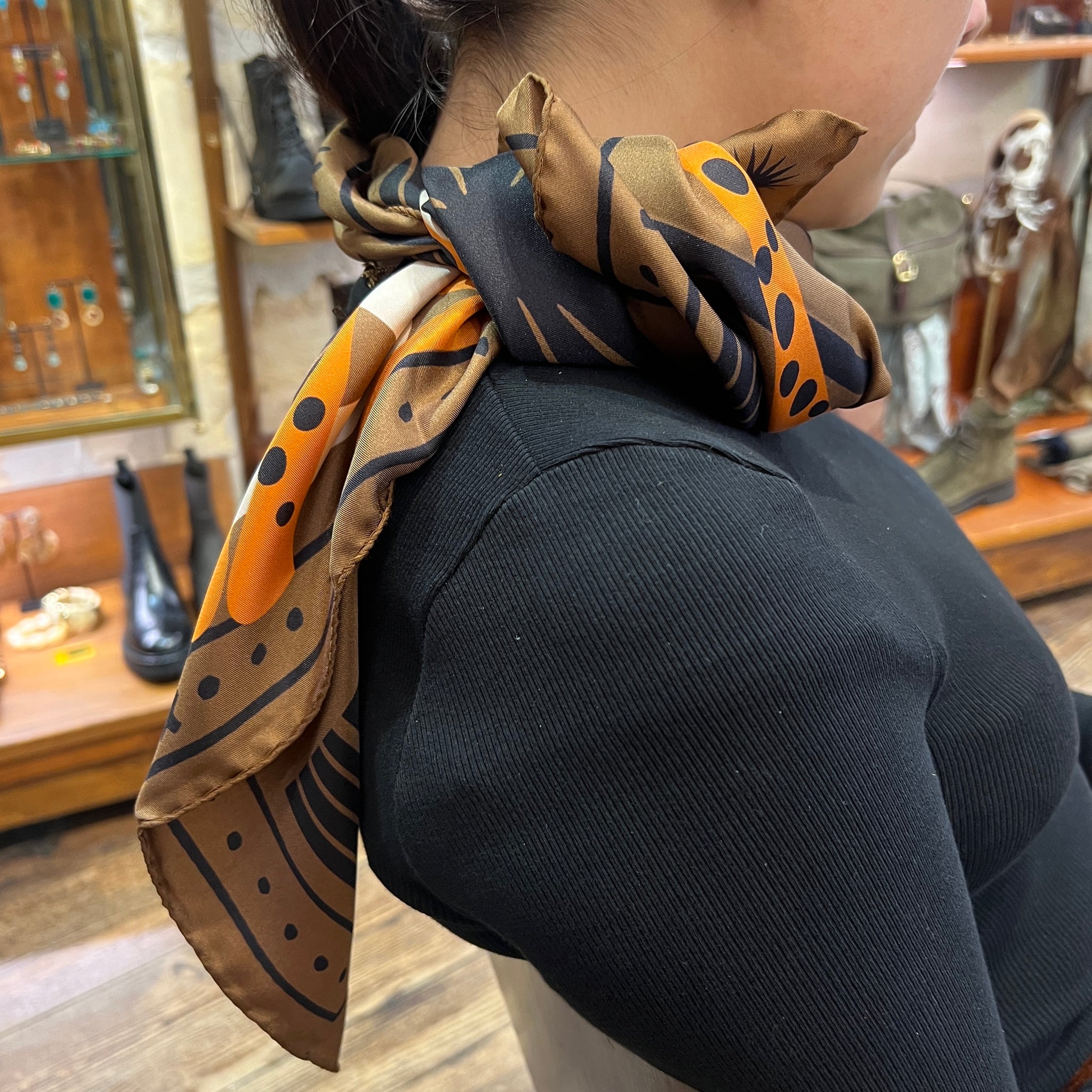 Foulard en soie, dessiné en France et imprimé dans la région de Côme en Italie berceau de la soie depuis les années 30.