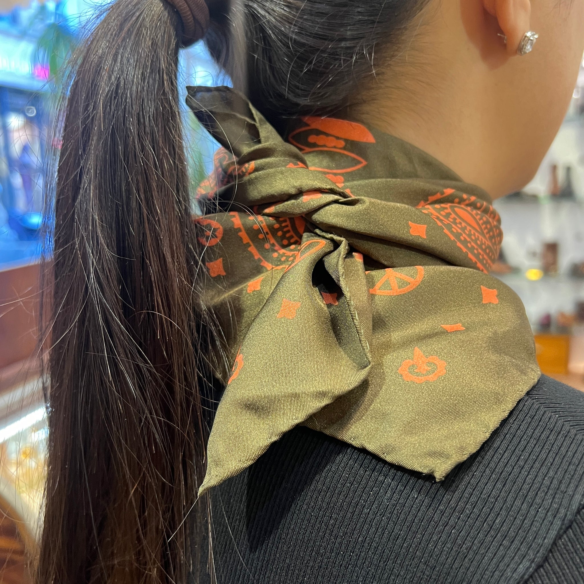 Foulard en soie, dessiné en France et imprimé dans la région de Côme en Italie berceau de la soie depuis les années 30.