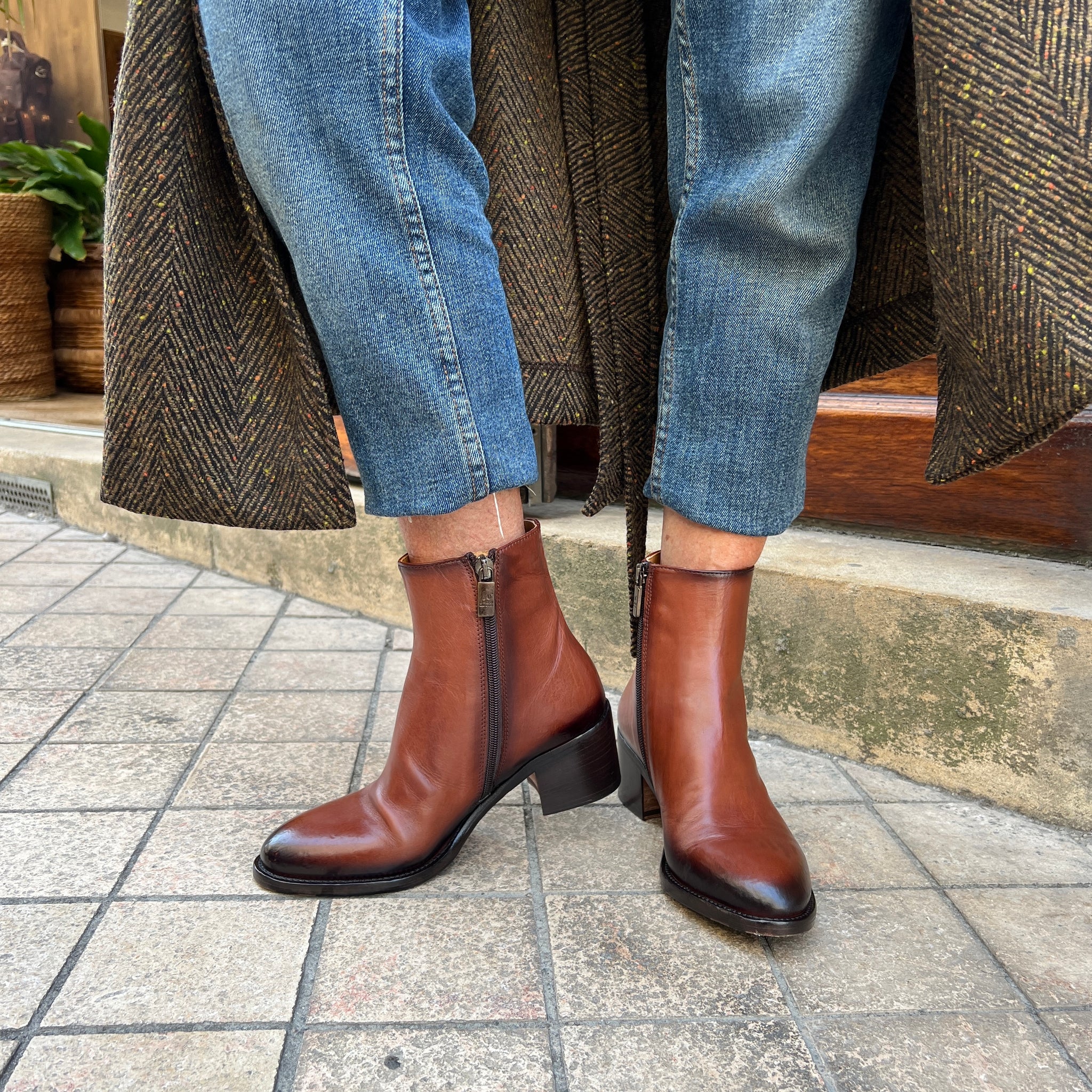 Boots Talon Trotteur Zippé Intérieur en Cuir Camel