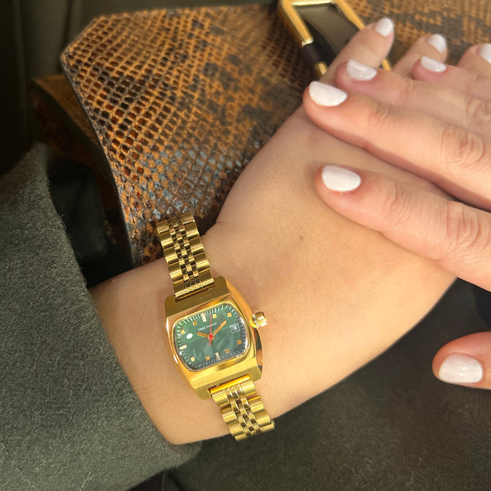 Montre MINI MAGNUM Gold Basil Green Bracelet Maille Dorée