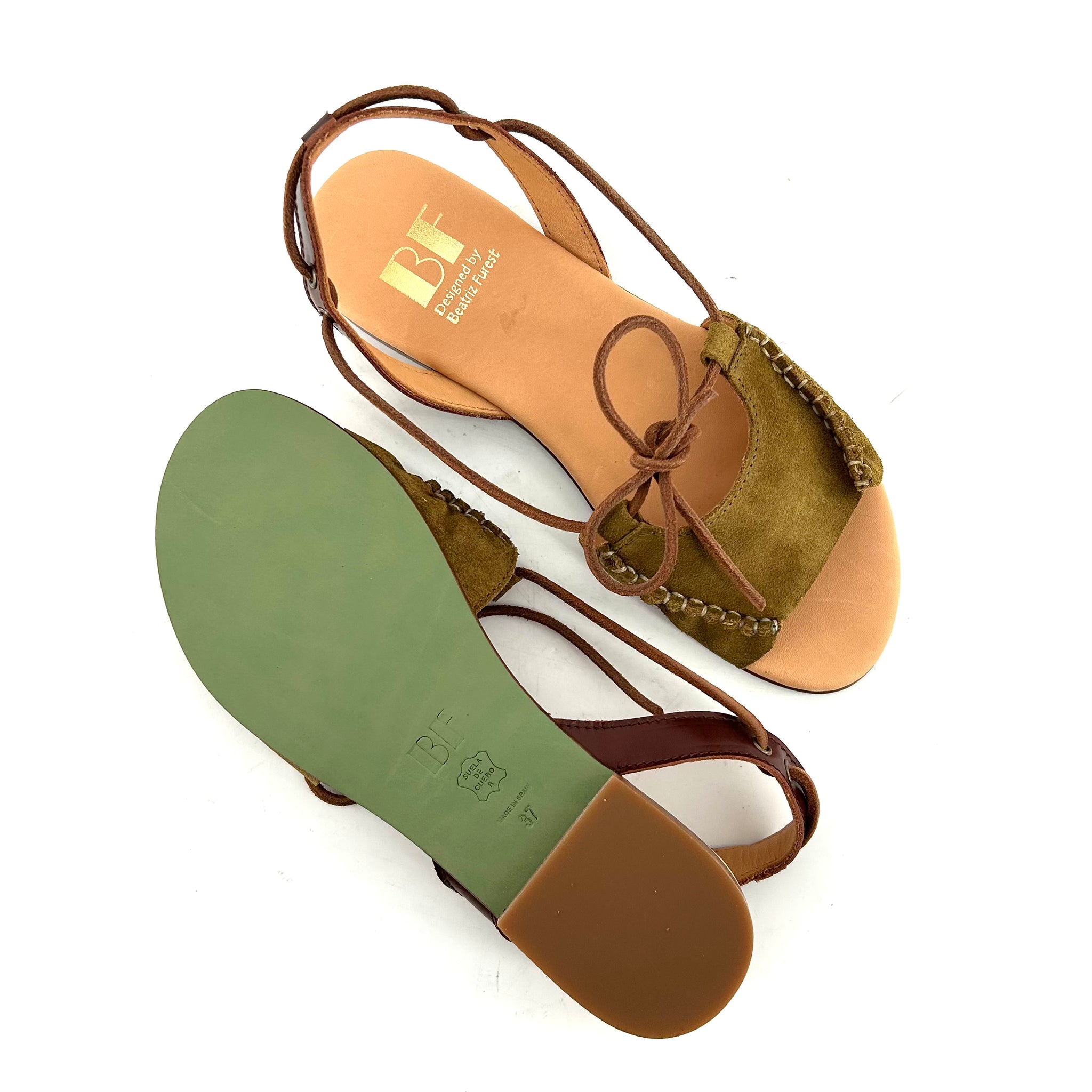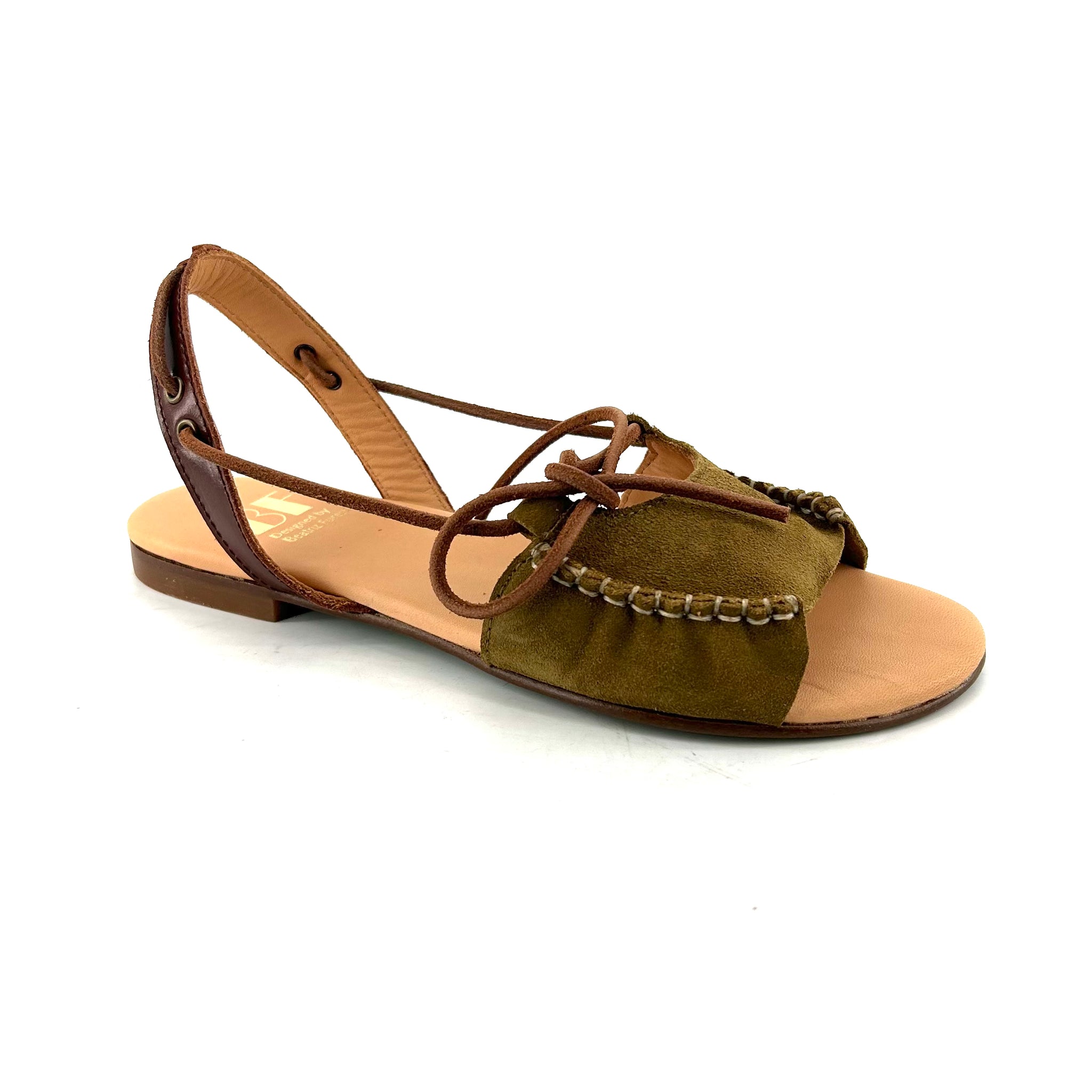Sandale en Daim Kaki et Cuir Marron