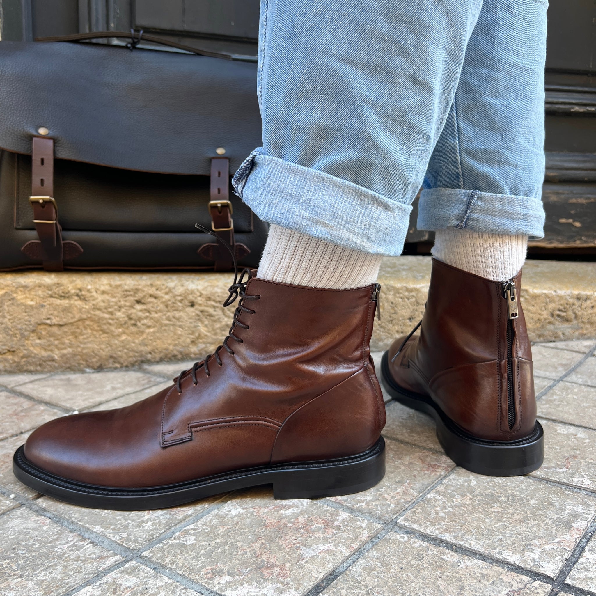 À noter, le subtil montage zippé arrière, qui facilite l'enfilage, souvent contraignant des chaussures lacets montantes.