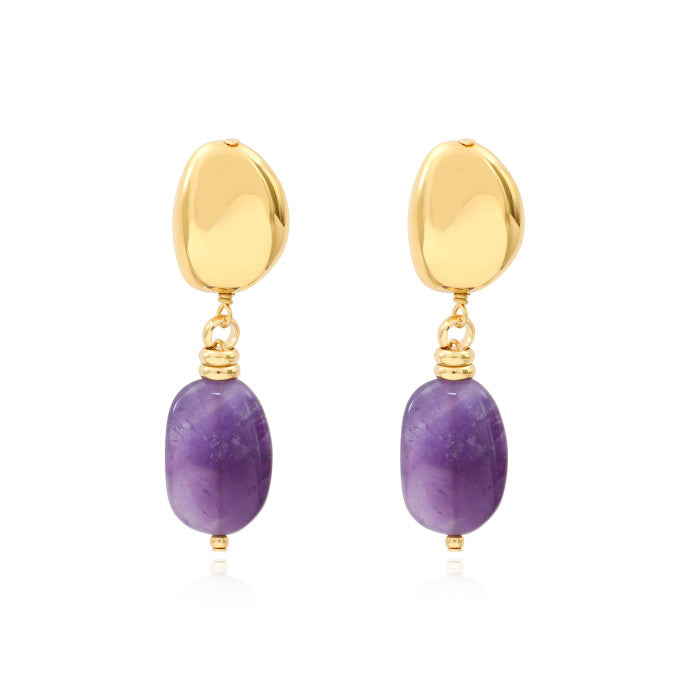 Boucle d'Oreille à Clips LOULOU en Métal Doré et Améthyste