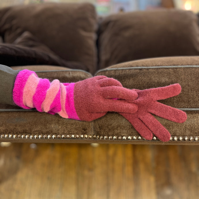 Longs Gants en Laine et Cachemire Tricolore Rose