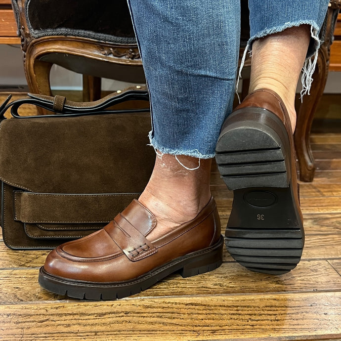 Mocassin Semelle Crantée en Cuir Marron Foncé