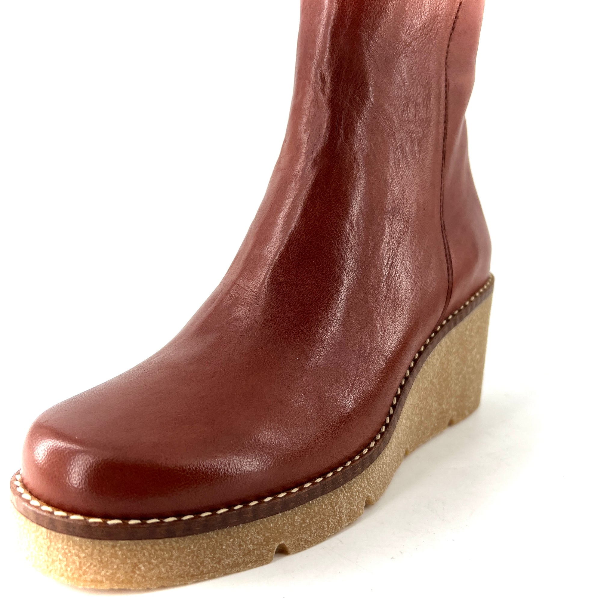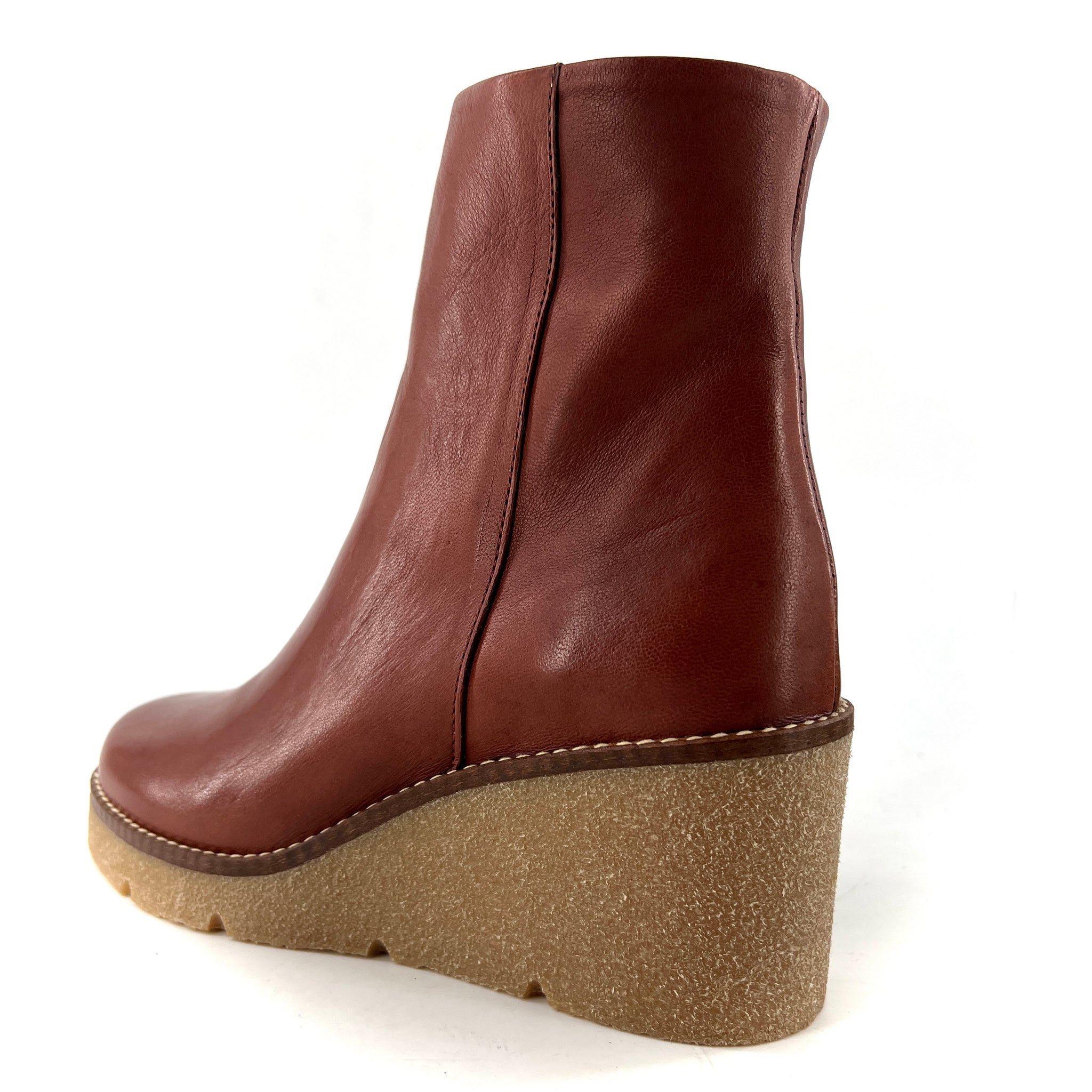 Boots Talon Compensé Crêpe en Cuir Camel