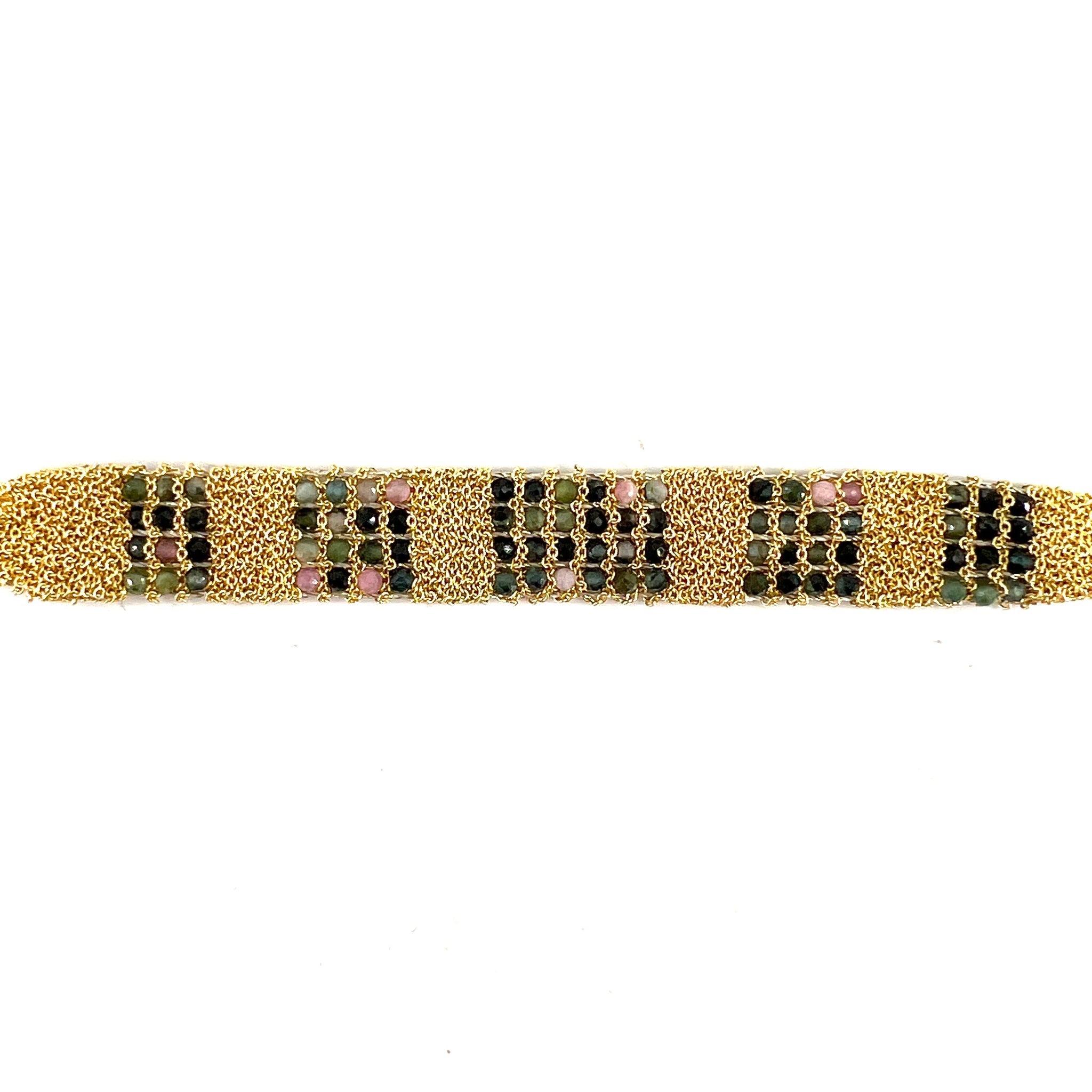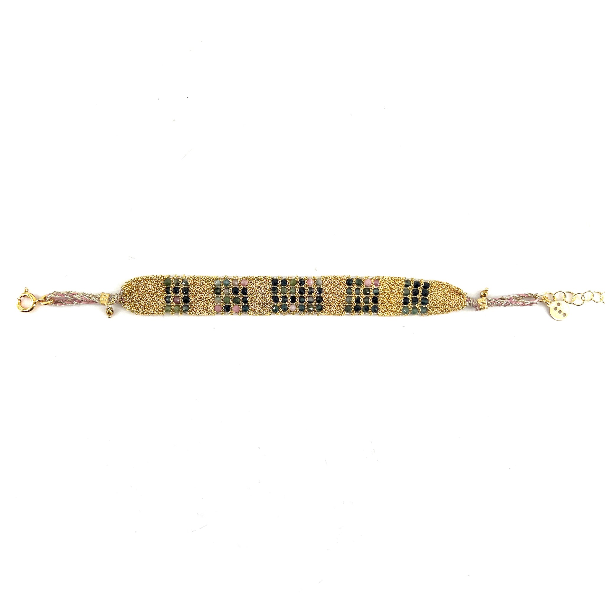 Bracelet GM en Maille Tissée en Vermeil et Pierres Semi-Précieuses